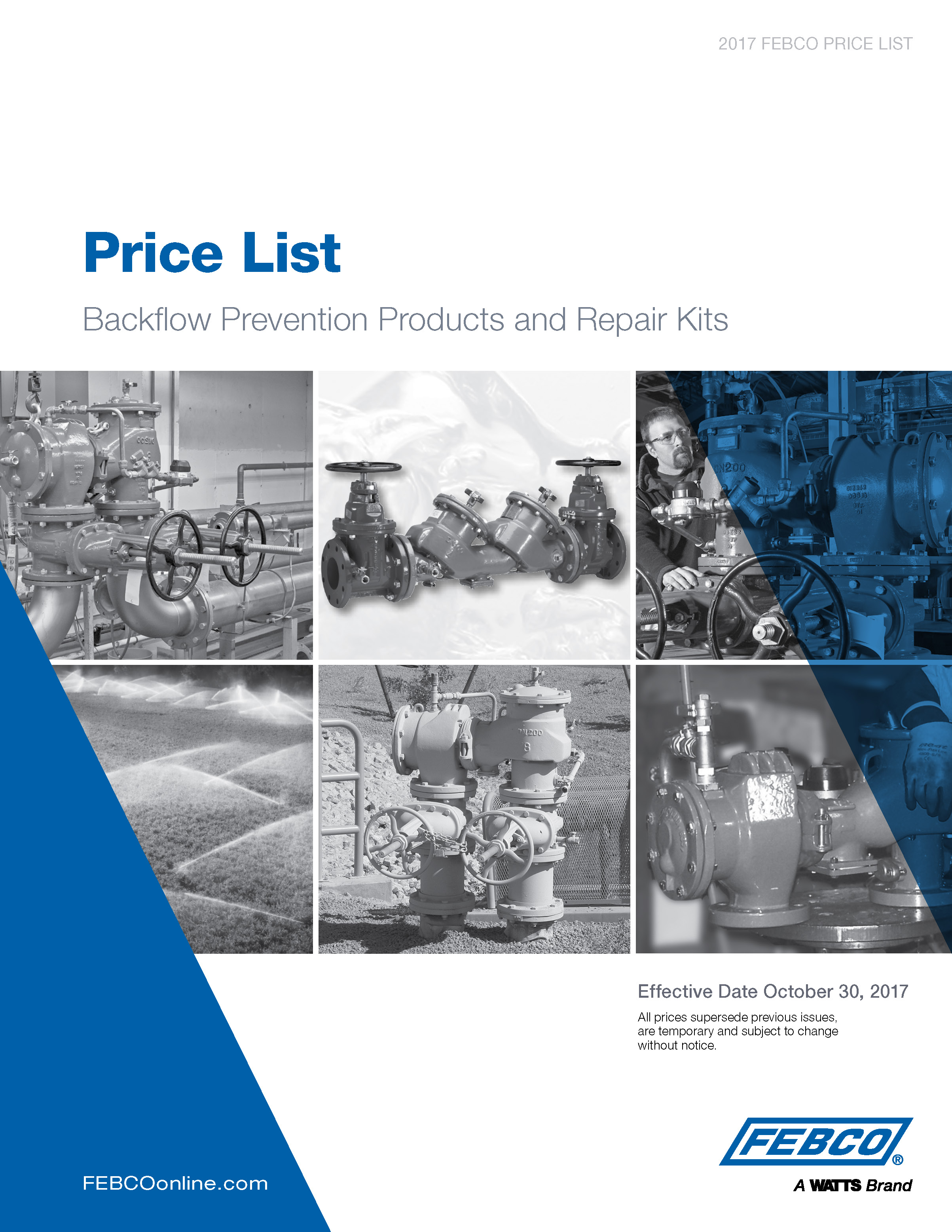 Manufacturer price lists show list price. Certified backflow testers will receive a discount off of these prices. Log into your account to view your price or contact one of our customer service specialists at (800) 575-9618